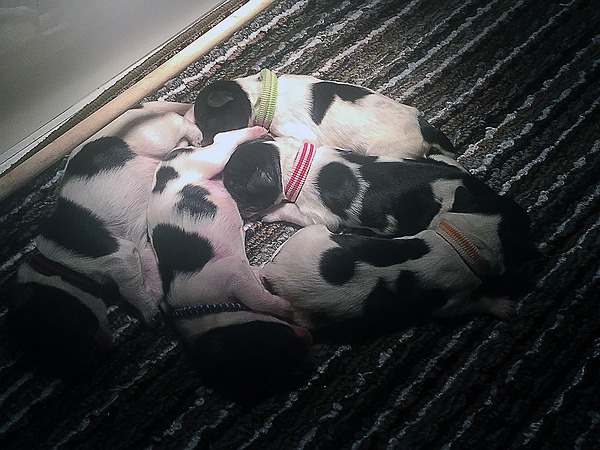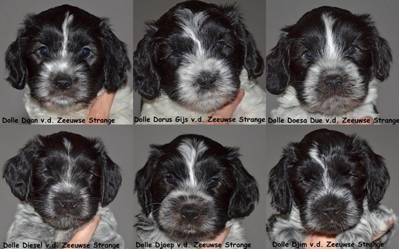 Geboren op 15 januari 2012 uit de combinatie Oons Dolly Dorris van Elsan's Nust x Machtige Boris van 't Geuzenheim: 5 reuen en 1 teef (Schapendoeskennel "van de Zeeuwse Strange") .