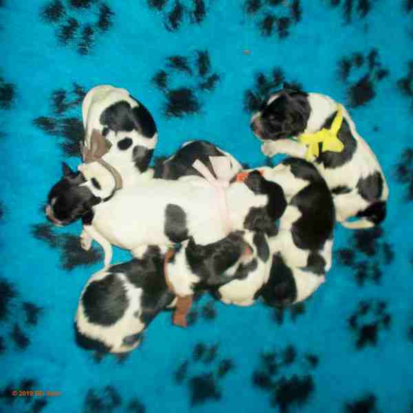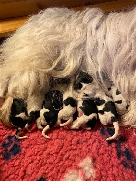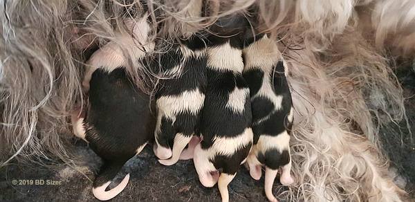 Geboren op 16 april 2016 uit de combinatie Get a Luchs of Hairy Grasshoppers x Sil's Messi van Elsan's Nust : 2 reuen en 6 teven ( schapendoeskennel "Hairy Grasshoppers " in Oostenrijk)