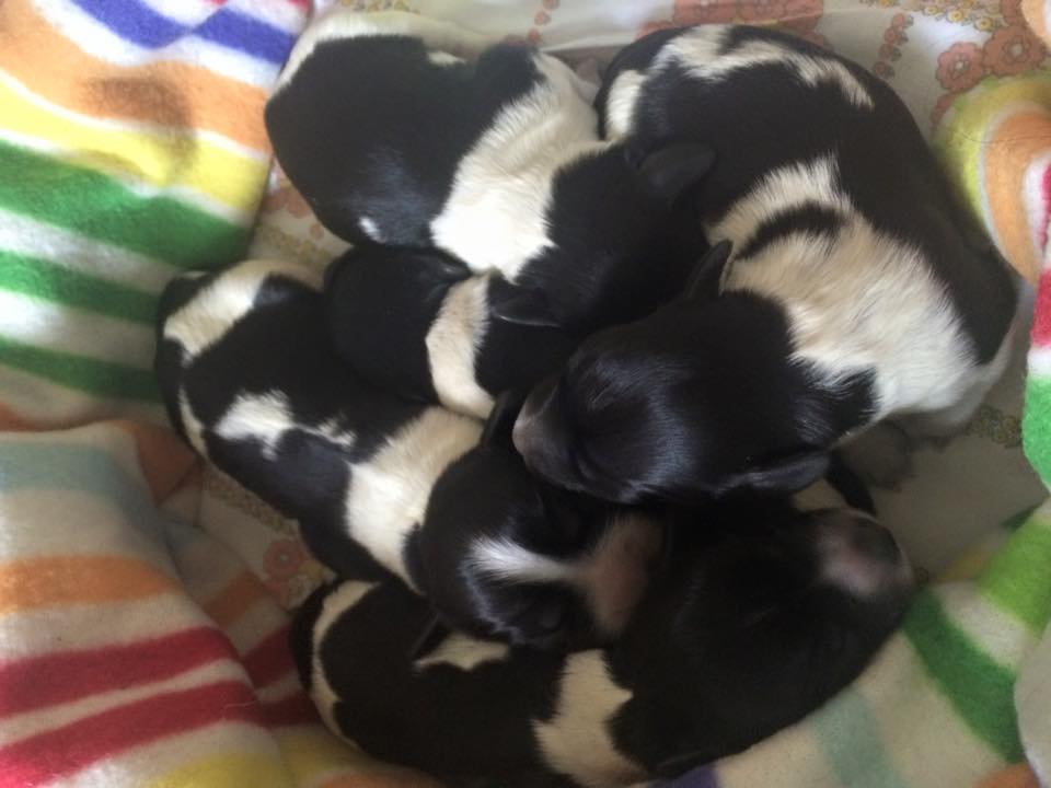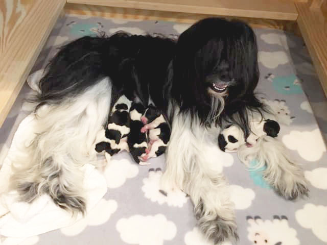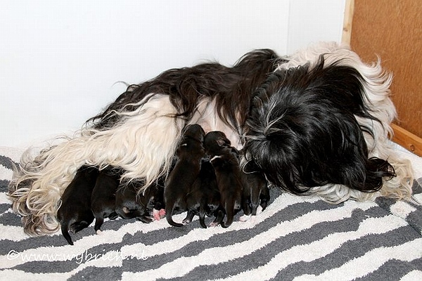 Geboren op 8 februari 2016 uit de combinatie La Familia's Condor Feeflora Flurry x AlmeLola's Tintin van Elsan's Nust : 2 reuen en 3 teven ( Schapendoeskennel "Trolltorpet's" in Zweden )