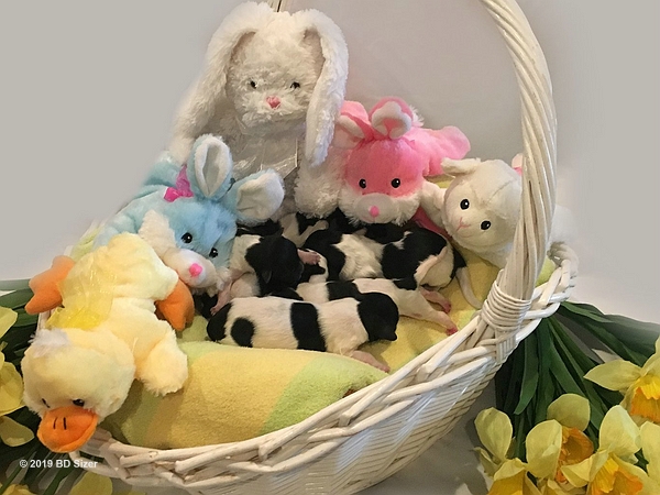 Geboren op Valentijsdag, 14 februari, 2017 uit de combinatie Sil's Shasta van Elsan's Nust x Merlot : 4 reuen en 2 teefjes ( Schapendoeskennel "Du Bouleau Blanc" in Canada )