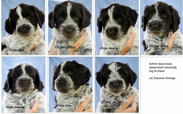 Geboren op 21 mei 2013 uit de combinatie Oons Dolly Dorris van Elsan's Nust x Olivier Kobus Akqi van de Korte Toren : 2 reuen en 5 teven ( Schapendoeskennel "van de Zeeuwse Strange").
